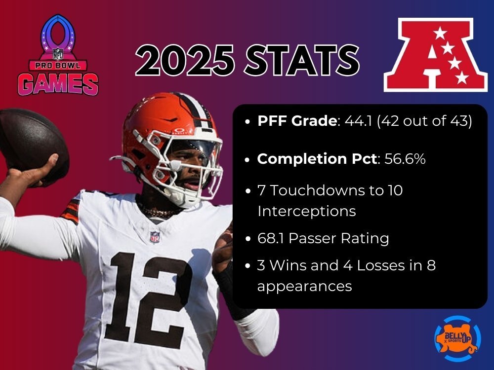 Now here’s the twist — despite modest numbers, the NFL added him to the 2026 Pro Bowl Games roster as a replacement after Drake Maye was pulled out due to Super Bowl commitments. That made Sanders the first Browns quarterback to make the Pro Bowl since 2008 — rookie season and all.